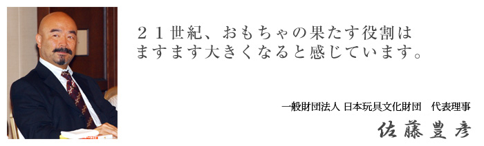 21世紀、笑顔の広がる社会作りに向けて、おもちゃの果たす役割はますます大きくなると感じています。